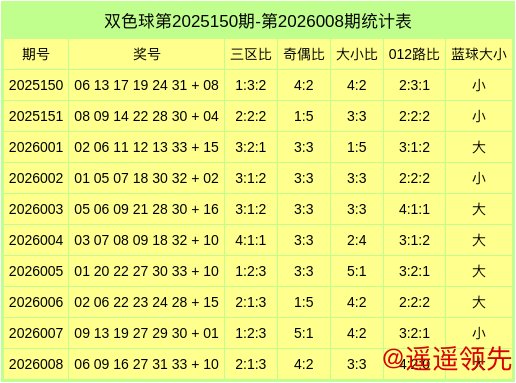 红球大小比为3:3,奇偶比为4:2,012路比为4:2:0,蓝球开出大数。
